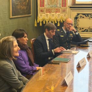 Presentata in Sala G. Marra a Palazzo Marino l'edizione 2026 del Trofeo Interforze. Importante novità di quest'anno sarà la prima edizione del Torneo di Padel con squadre miste che affiancherà l'11ma di calcio. Presenti alla conferenza stampa la Presidente del C.C. di Milano Elena Buscemi, la Delegata CONI Milano Claudia Giordani, il Comandante dell'Aeroporto Militare di Linate Fabio Saccotelli e il Presidente AQUAS Angelo Marra.